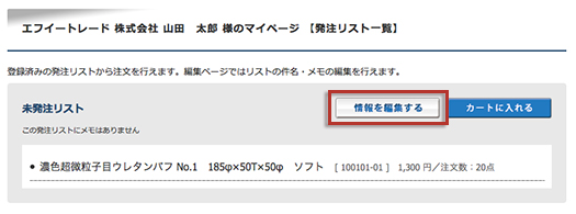 お好きなリスト名を付けて下さい。リスト名はマイページの発注リストからも編集可能です。![]()