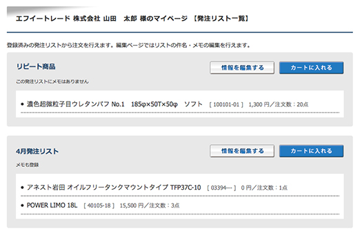 発注リストはカートに入れた商品リストがそのまま保存できます。