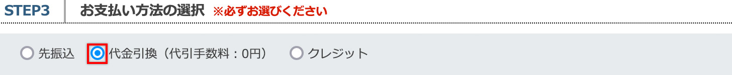 商品の注文画面で「代金引換」を選択してください。