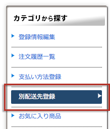 マイページの「別配送先登録」ボタンを押し、別配送先情報を表示させます。
