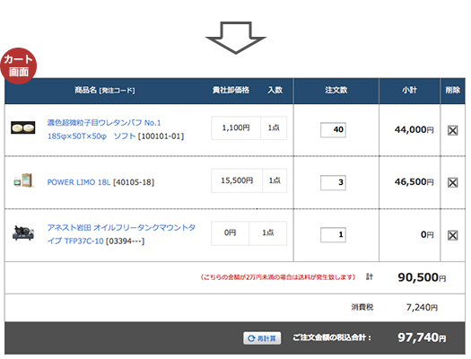発注リストはカートに入れた商品リストがそのまま保存できます。