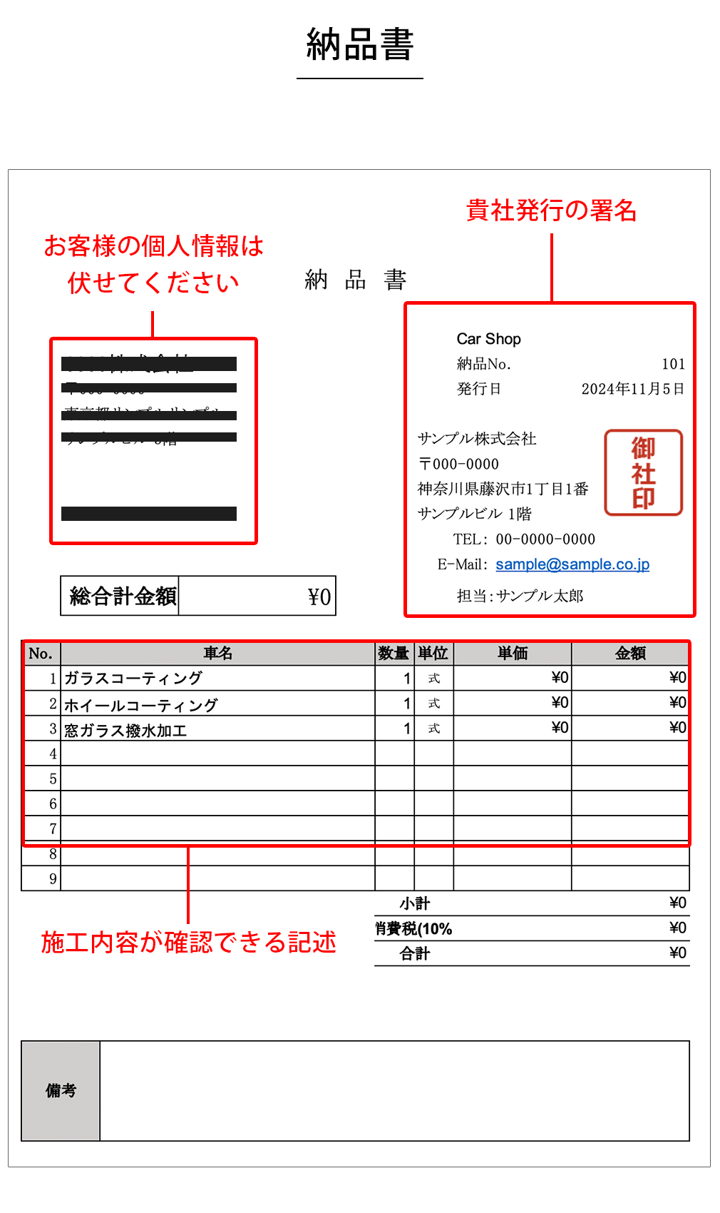 当ECサイトでは、主にカーディテイリングを主業種としているお客様(法人)に限り登録を承認させていただいております。ご登録フォームへの入力と併せて以下の「必要書類」を必ずご提出ください。
